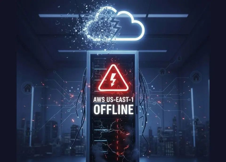La región AWS US-EAST-1 colapsó. Millones de apps y servicios financieros cayeron. Un fallo DNS expone la fragilidad de nuestra vida digital interconectada.